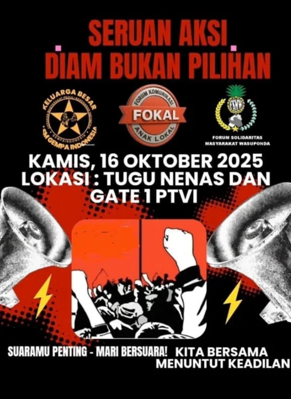 Luwu Timur — Jaringan Koalisi Aktivis Masyarakat Lingkar Tambang Luwu Timur (JAKAM Lutim) menyatakan dukungan penuh terhadap Seruan Aksi Akbar yang di pelopori oleh 3 Oraganisasi lokal kecamatan wosuponda (LSM Gempa,Fokal Wosuponda, dan FSM Wosuponda yang akan digelar Kamis, 16 Oktober, di Tugu Nanas dan Gate 1 PT Vale Indonesia Tbk.