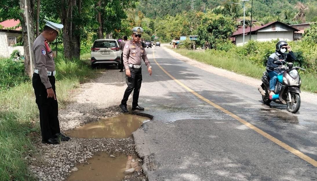 Kasat lantas polres Luwu timur yang berada dilokasi bersama personil berjanji akan segera mengkoordinasikan ke Pemda dinas terkait untuk cepat dibenahi. *Tegas * Agusnawan