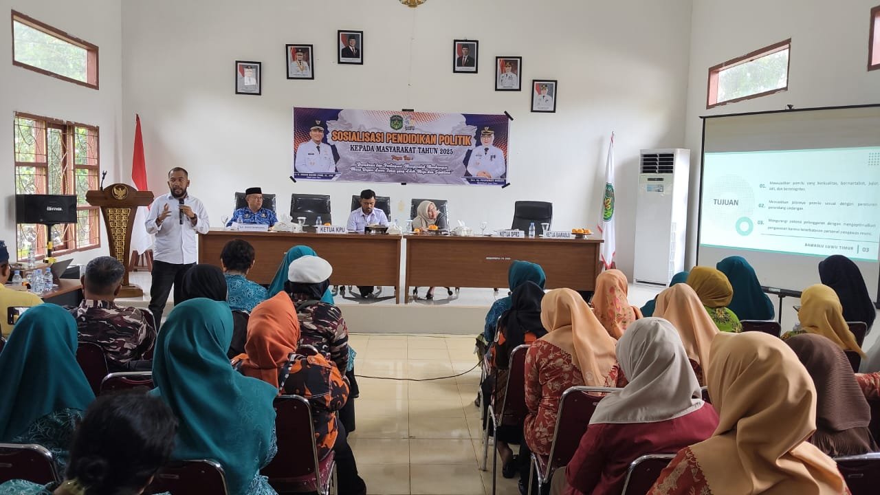 Malili – Koordinator Divisi Hukum, Pencegahan, Partisipasi Masyarakat, dan Humas Bawaslu Luwu Timur Sulkifli menekankan pentingnya pengawasan partisipatif sekaligus memperkenalkan berbagai inovasi program pendidikan politik yang digagas Bawaslu sebagai upaya meningkatkan Pendidikan politik bagi masyarakat. Hal itu disampaikan, saat menjadi narasumber dalam kegiatan Sosialisasi Pendidikan Politik Tahun 2025 di Aula Kantor Kesatuan Bangsa dan Politik, Senin (1/12/2025)