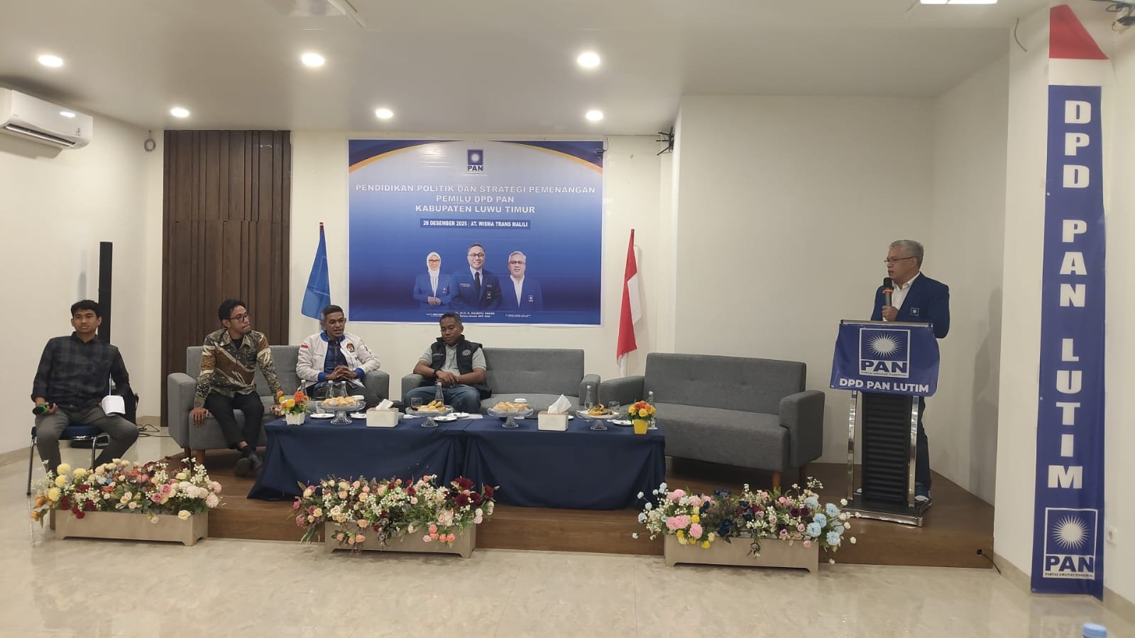 Dalam agenda tahunan konsolidasi kader partai Amanah Nasional saat menyampaikan sambutanya pada pendidikan Politik, dalam Musda PAN ke-VI Secara Virtual, di Wisma Trans, desa Puncak Indah, kecamatan Malili, kabupaten Luwu Timur, Minggu (28/12/2025).